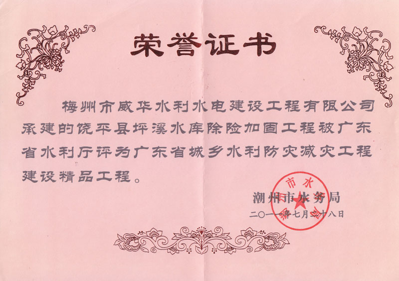 2011年饒平縣坪溪水庫除險(xiǎn)加固工程