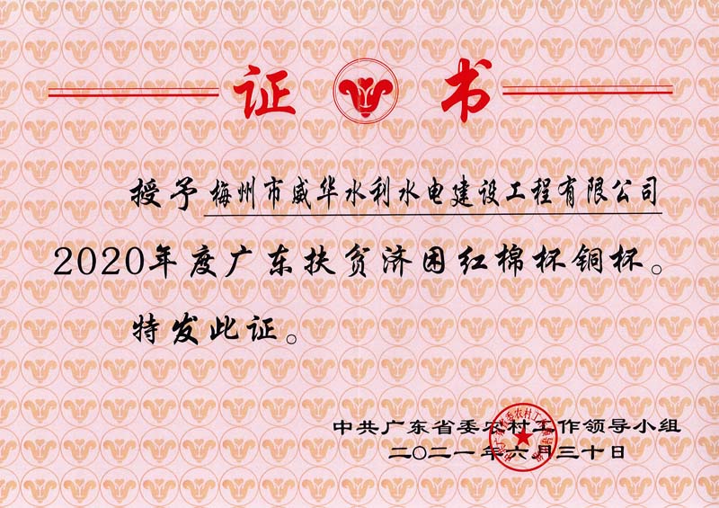 2020年度廣東扶貧濟困紅棉杯銅杯
