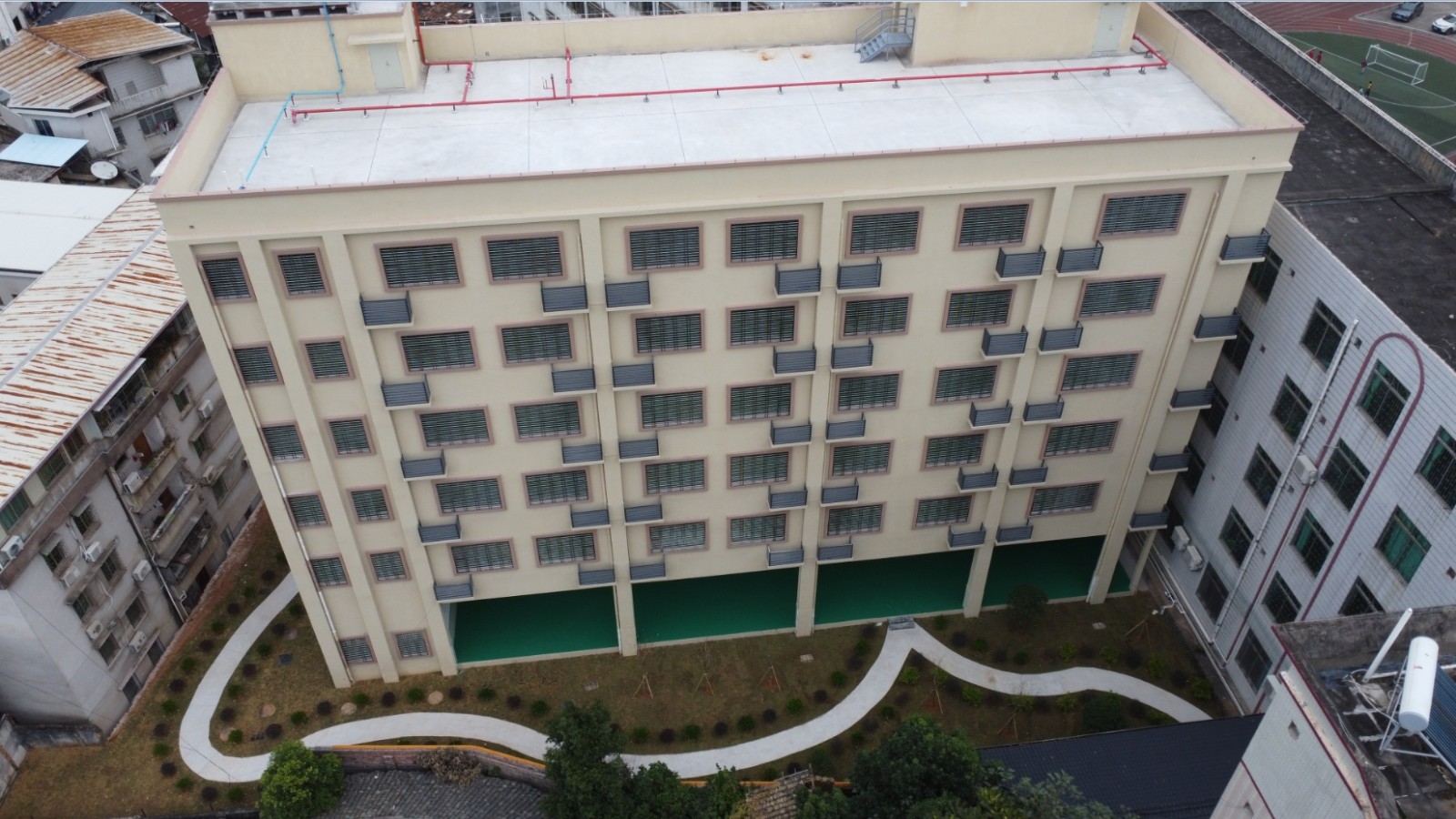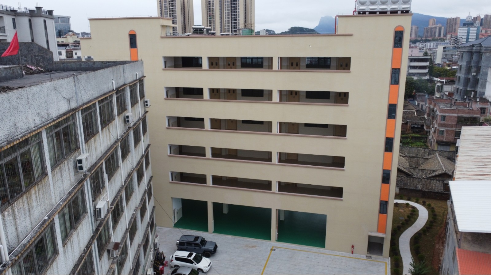 工程規(guī)模及內(nèi)容: 新建一棟建筑面積3104.28㎡,地上6層教學樓及相關(guān)附屬工程,并打通一條消防通道。此項目榮獲2023年梅州市房屋市政工程安全生產(chǎn)文明施工示范工地。